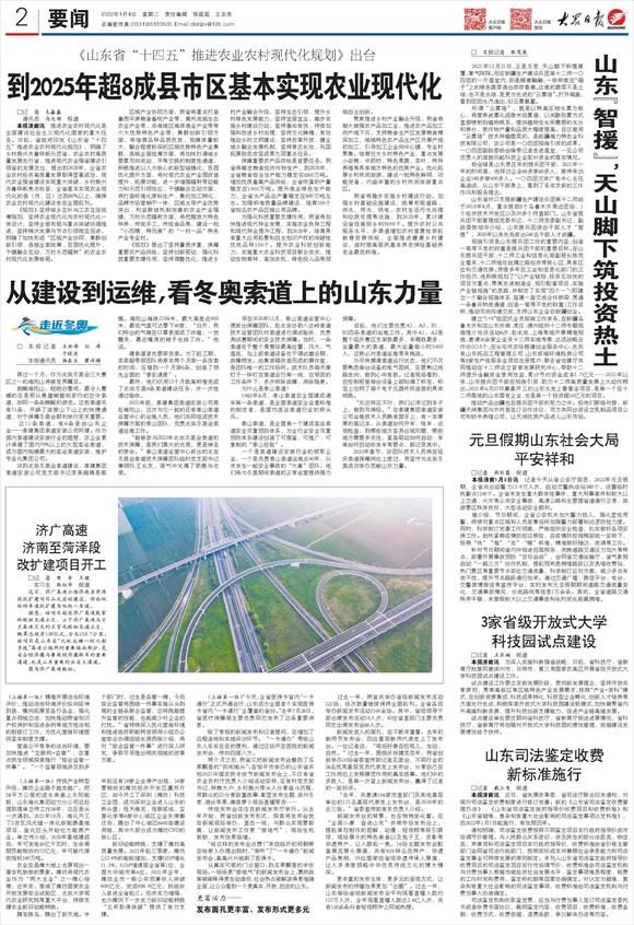 本报济南讯 推进农业农村现代化是全面建设社会主义现代化国家的重大任务。日前,省政府印发《山东省“十四五”推进农业农村现代化规划》,明确了乡村振兴齐鲁样板示范省、农业农村高质量发展先行省、推进现代农业强省建设引领省的发展定位,提出到2025年,全省农业农村经济高质量发展取得显著成效,现代农业强省建设实现重大突破,乡村振兴齐鲁样板亮点纷呈,全省基本实现农业现代化的县(市、区)达到80%以上,确保农业农村现代化建设走在全国前列。